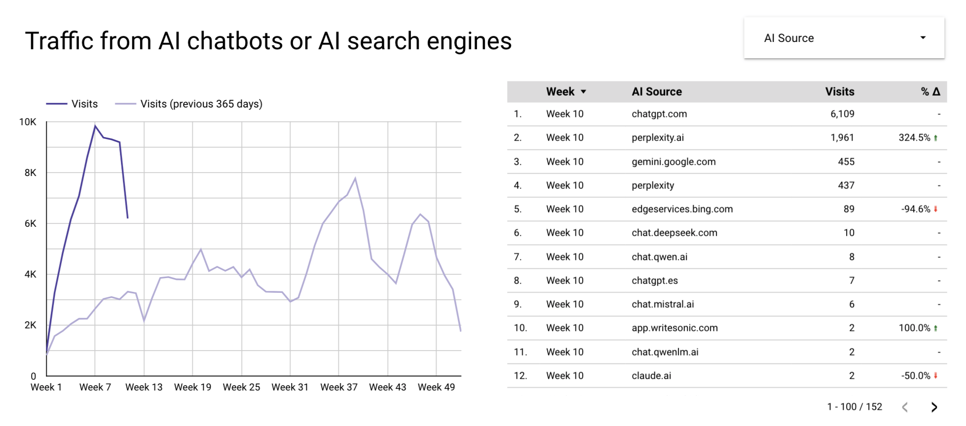 Les meves dades recents mostren alguns patrons interessants en el trànsit impulsat per IA: